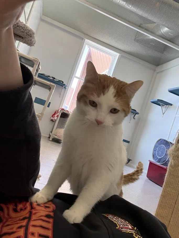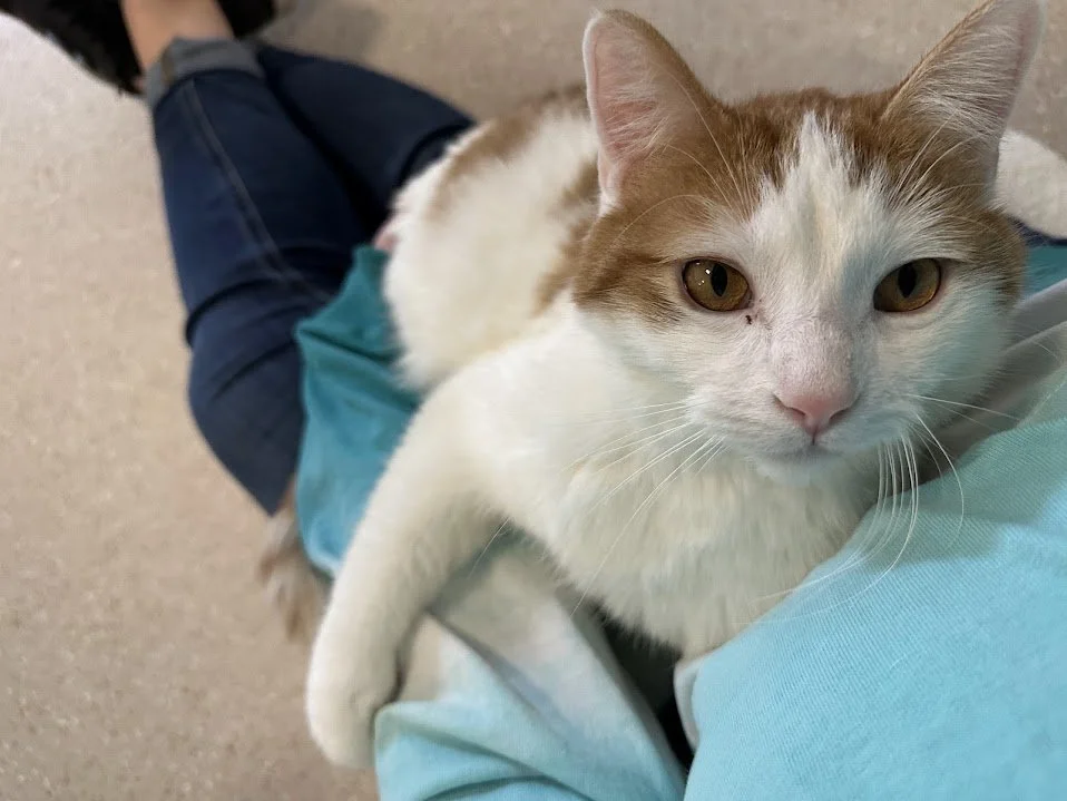 Boone is a VERY snuggly guy — as long as he has a lap to keep warm, he’s content!