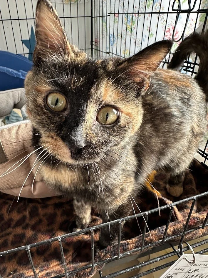Information: female, Domestic Short Hair, tortoiseshell, approximately 6-7 months old, up-to-date on vaccinations, FIV/FeLV-, spayed, microchipped