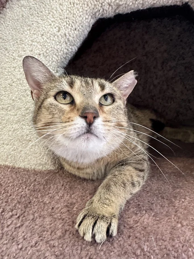 Rather than venturing out to explore, Ginny prefers cozy spots to rest, observe, and quietly relax