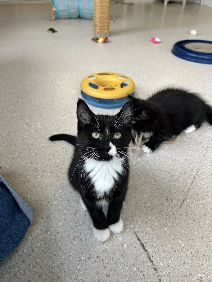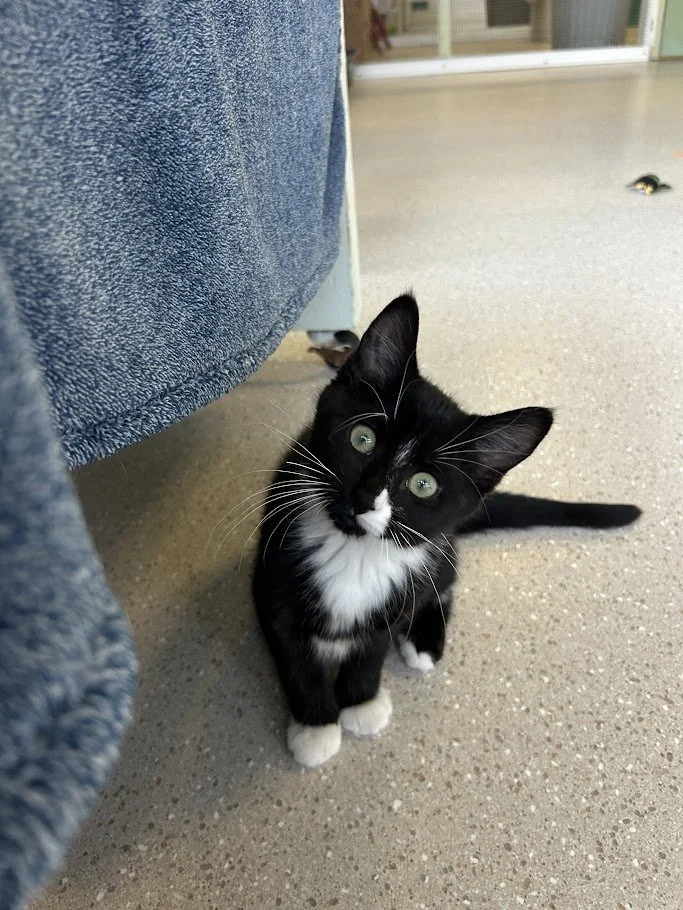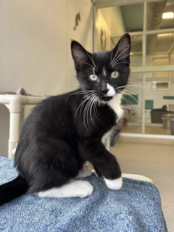 Information: female, Domestic Medium Hair, black with white on half of nose, approximately 3 months old (DOB~8/3/25), FIV/FeLV-, up-to-date on age-appropriate vaccinations, spay & microchip included in adoption