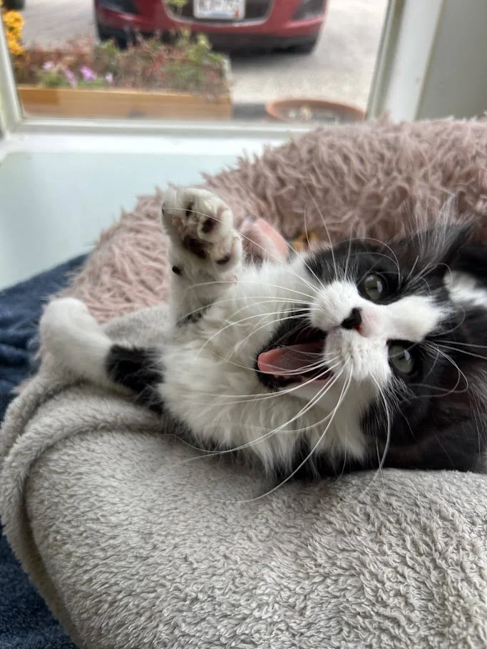 IMPORTANT NOTE: Due to Jasper’s age and very playful energy, he must have a playmate in the home — this means either being adopted as a pair with a kitten sibling, or joining a home with another playful cat. Having a play buddy is crucial to his development and preventing single kitten syndrome.