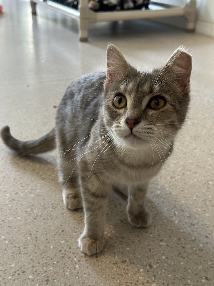 Information: female, Domestic Short Hair, torbie, approximately 7-8 months old (DOB~9/2/25), FIV/FeLV-, up-to-date on vaccinations, spayed, microchipped
