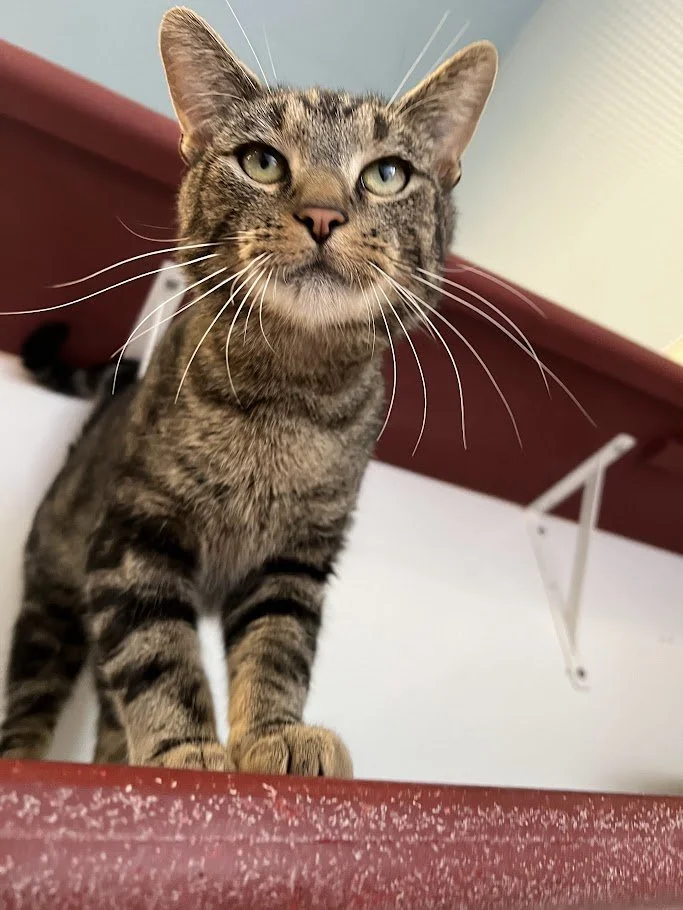 Information: male, Domestic Short Hair, brown tabby, approximately 1-2 years old, FIV/FeLV-, up-to-date on vaccinations, neutered, microchipped