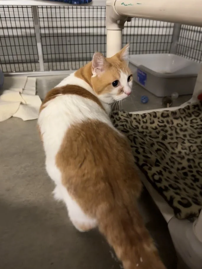 Information: female, Domestic Short Hair, orange & white, approximately 6 years old, FIV/FeLV-, spayed, microchipped