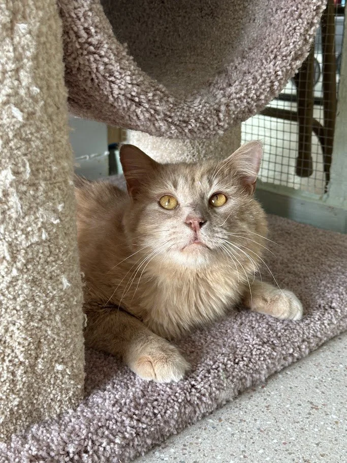 Mufasa’s a laid back, friendly boy who appreciates the simple joys in life like cat tower perches, treats, and afternoon snoozes. Because Mufasa came to WAHS as a stray cat with an unknown past, we’re still getting to know his likes, dislikes, and overall personality — but what’s clear is that he’s a sweetheart who’d do well in a variety of homes.