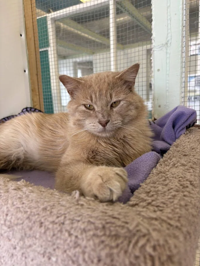 Information: male, Domestic Long Hair, buff orange, approximately 2 years old (DOB~3/17/24), FIV/FeLV-, up-to-date on vaccinations, neutered, microchipped