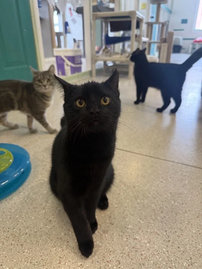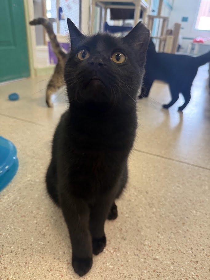 Information: male, Domestic Short Hair, black, approximately 6 months old (DOB~10/27/25), FIV/FeLV-, up-to-date on vaccinations, neutered, microchipped