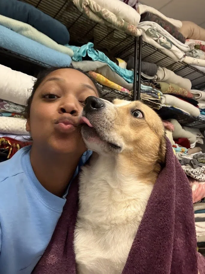 Scotty originally arrived with his mother and sister, and they’d been his main sources of comfort. The transition to the shelter environment was difficult, but each day he branched out and began developing bonds with caretakers — one of whom he’s currently being fostered by until an adopter comes along.